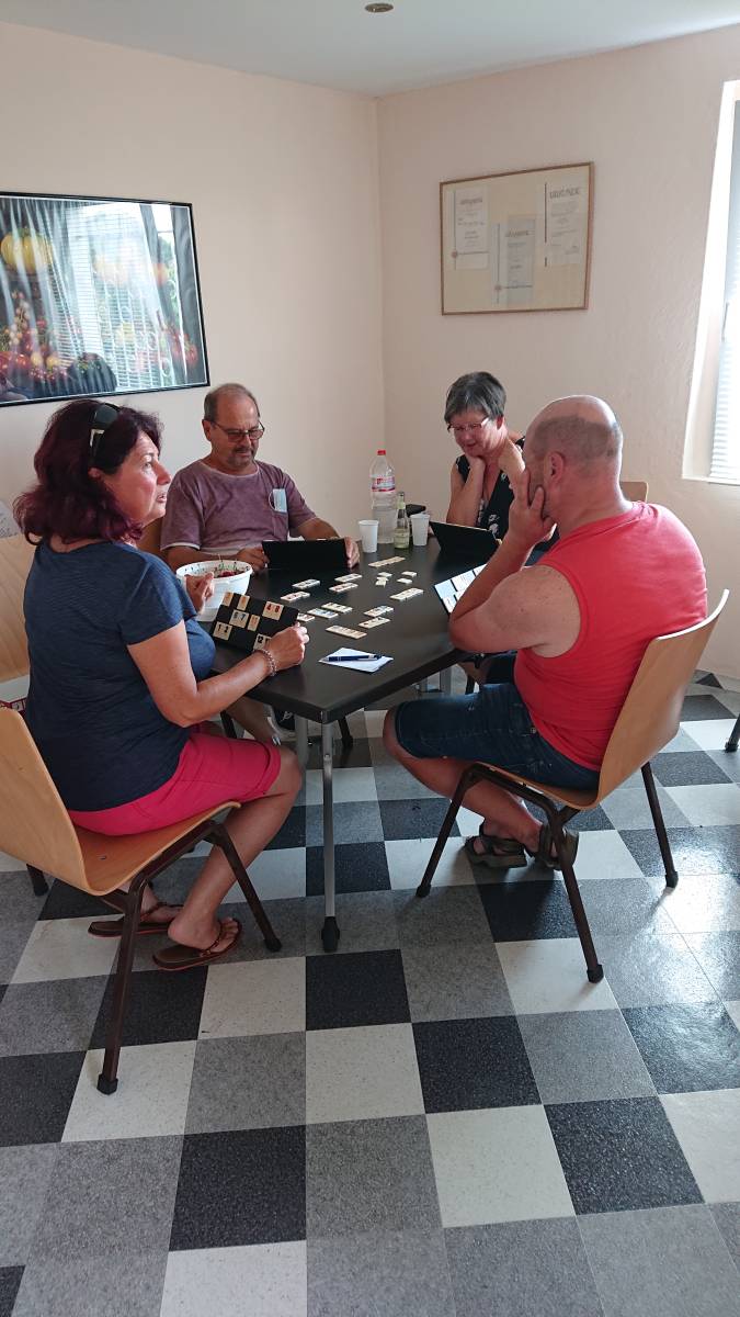 Tatsächlich – die Spielenachmittage finden regelmäßig statt. Neben den Stammspielern finden sich immer mal andere Gartenfreunde ein, die den Spaß und den Reiz des Spielens teilen. Beliebt sind unangefochten Rommé und Skat. Aber wir freuen uns immer über neue Spiele und neue Mitspieler. Meldet euch an – es ist immer wieder ein Vergnügen und die zwei Stunden sind rum wie nichts.